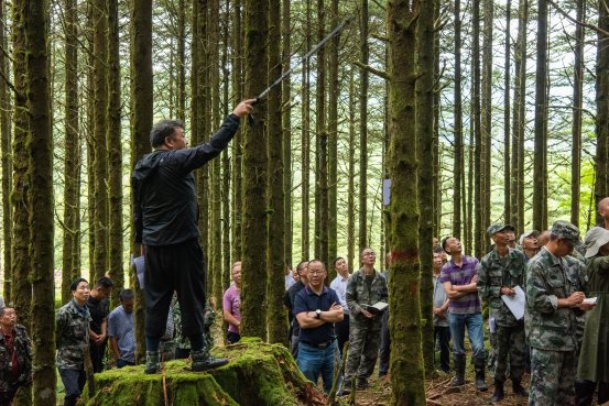 培训有幸邀请到四川农业大学教授、博士生导师黄丛德及其博士生团队,四川省林业和草原局资源总站四级调研员李裕,四川省天然林保护中心二级调研员冯凉,原四川省林业和草原调查规划院教授级高工、国家森林可持续经营试点项目专家库专家刘波、乐山市林业和园林局高级工程师闵俊贤、县林业局副局长廖邦乾等领导、专家到会指导。此次培训分为理论培训会和现场实际操作两部分。公司项目领导小组成员、各部门各林场负责人、林场业务科正副科长 、班长或油锯手代表共50余人参加了培训。