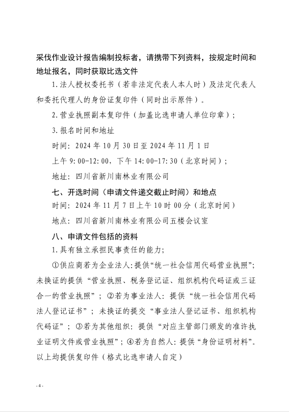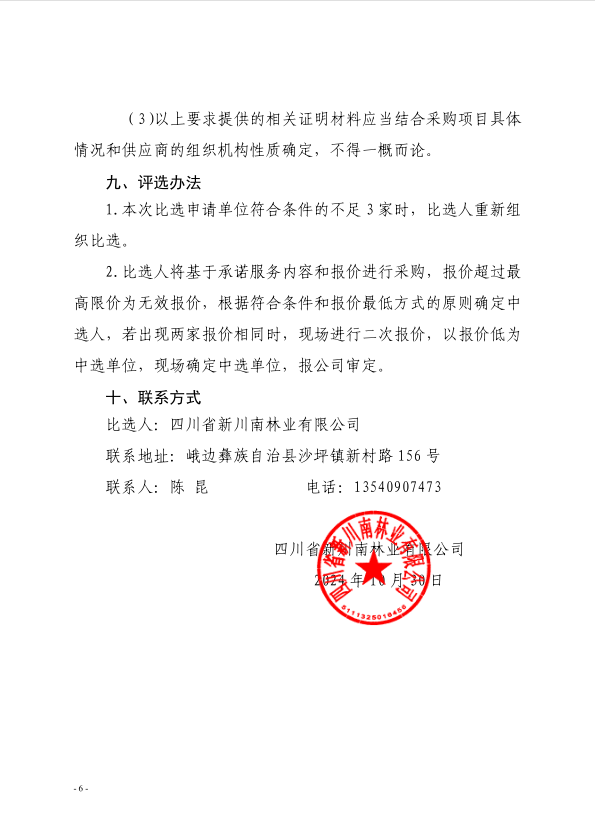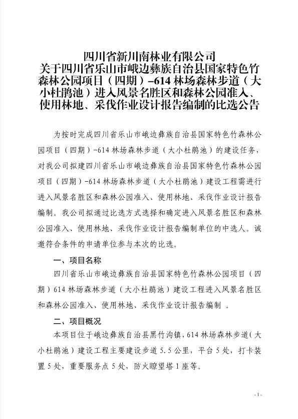 四川省新川南林业有限公司乐山市峨边彝族自治县国家特色竹森林公园项目(四期)关于614林场森林步道进入风景名胜区和森林公园准入等工作编制的比选公告